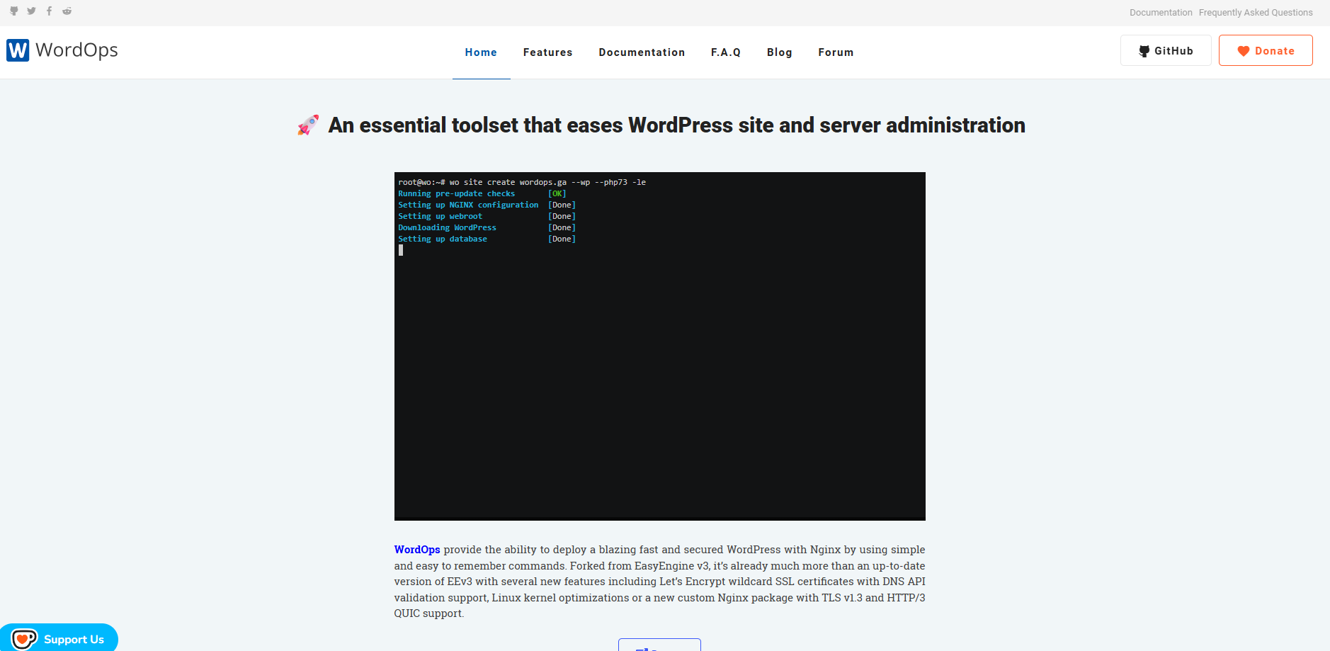 WordOps is a powerful script panel built on the foundation of EasyEngine (EE), a once-popular tool. Launched in 2018, WordOps focuses heavily on WordPress optimization but also supports other CMS platforms like Joomla and Drupal. It uses NGINX as its core web server, combined with PHP-FPM, MariaDB/MySQL, and caching solutions like Redis or Memcached. It supports multiple Linux distributions, including Ubuntu 18.04, 20.04, 22.04, and Debian.