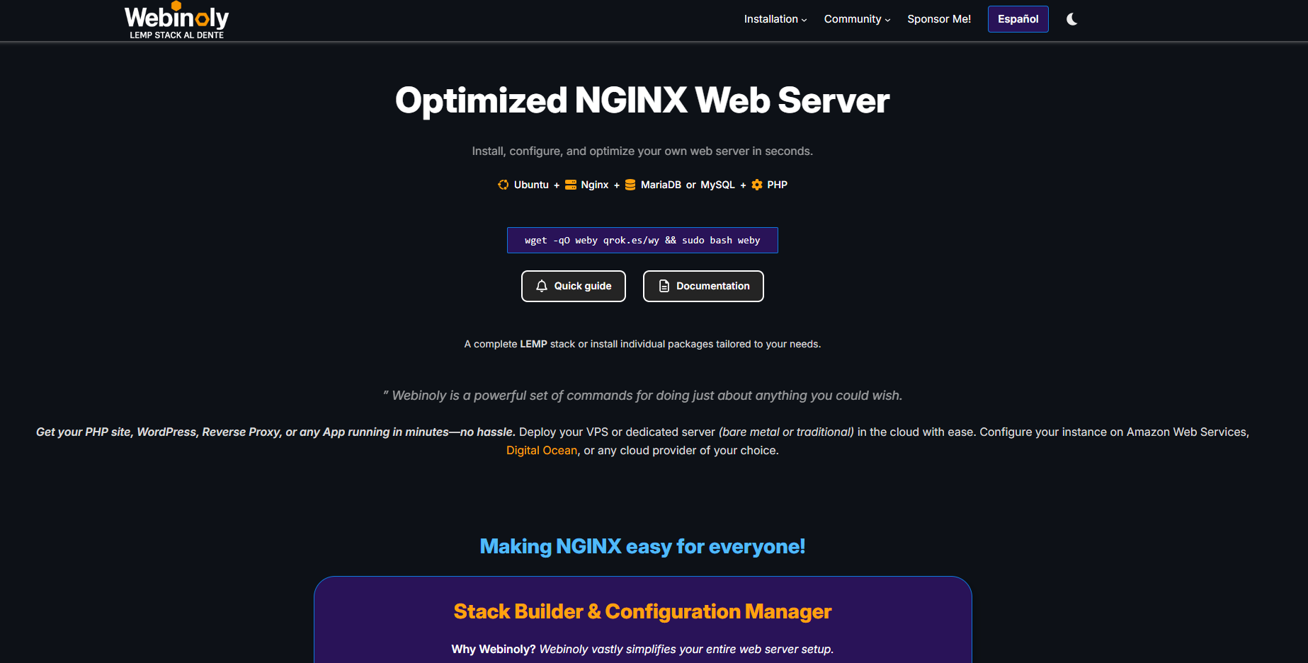 - Use Webinoly: Bloggers, personal sites, small VPS, simplicity-first setups.